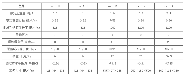 钢丝绳手扳葫芦又名钢丝绳牵引机,一种新型、高效、安全、耐用的起重机械产品,具有起重、牵引、张紧三大功能,整机结构设计合理,安全系数高,使用寿命长,主要额定起重量为800公斤、1600公斤、3200公斤,特别适用于野外无动力源状况下使用。 备注:上海沪工起重产品严格按国家3包执行,产品质量由中国人民保险公司(PICC)承保,请放心使用。